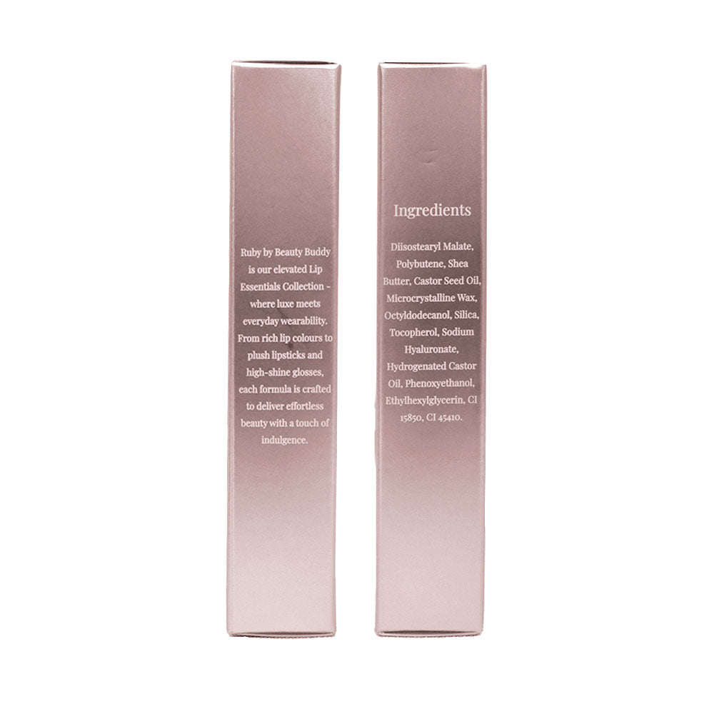 Ruby by Beauty Buddy is our elevated Lip Essentials range—where luxe meets everyday wearability. From rich lip colours to plush lipsticks and high-shine plumpers, each formula is crafted to deliver effortless beauty with a touch of indulgence.