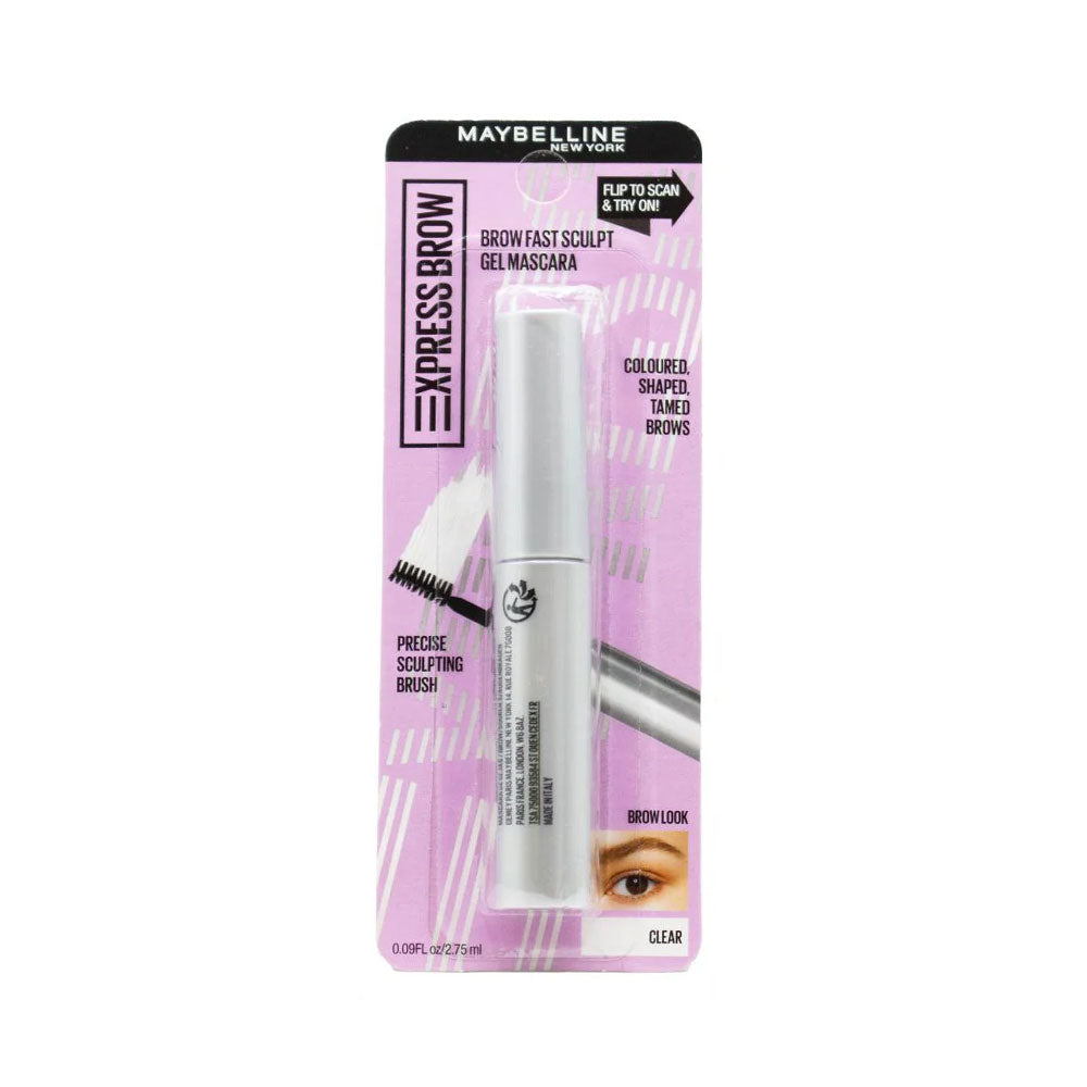 Express Brow Fast Sculpt Gel Brow Mascara colors, tames, and shapes eyebrows in a New York minute. The pigmented gel formula colors as the mini sculpting brush tames and shapes for all day naturally sculpted brows without the hassle.