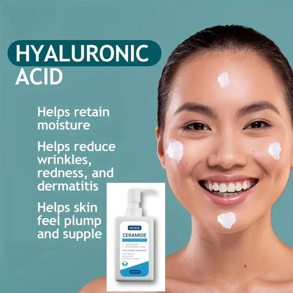 Nuage Ceramide Daily Moisturiser delivers essential hydration while supporting your skin’s natural barrier. Enriched with a blend of ceramides (NP, AP, EOP), hyaluronic acid, and vitamin E, this formula helps lock in moisture, defend against environmental stressors and maintain supple, healthy-looking skin. Its lightweight texture absorbs quickly without stickiness, making it ideal for daily use on all skin types — especially dry, sensitive or barrier-compromised skin.