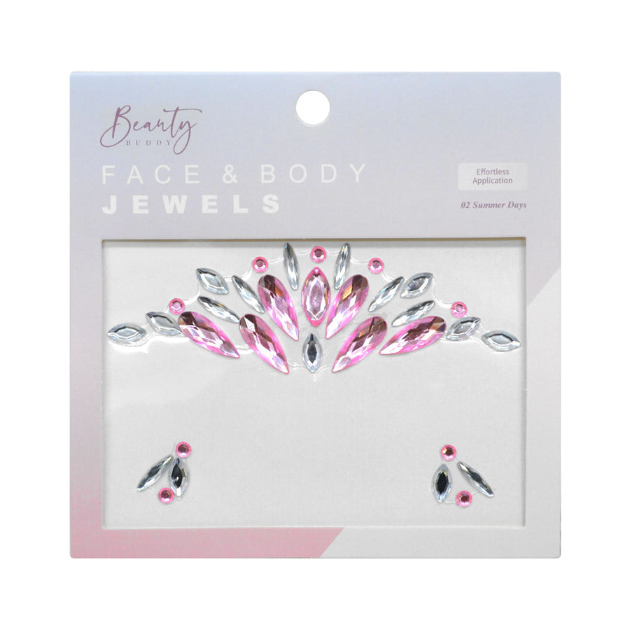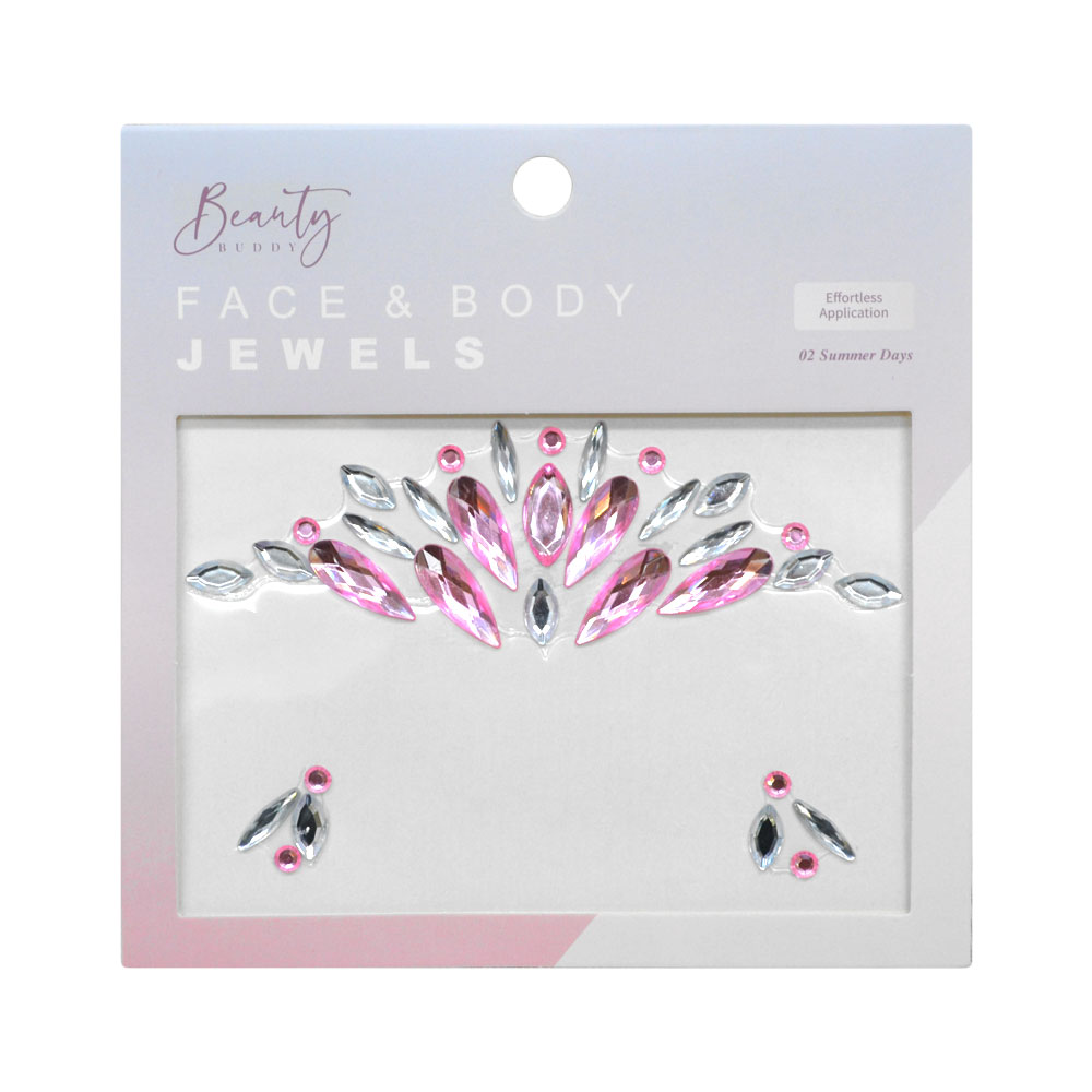 Add playful shimmer to your summer look with Summer Days from the Beauty Buddy Face & Body Jewels collection. Featuring warm-toned crystals in glowing golds, peaches, and iridescent finishes, these self-adhesive gems are pre-arranged for quick, mess-free application. Perfect for beach festivals, daytime parties, or sunset selfies, they’re the ultimate accessory for radiant, sun-kissed sparkle.