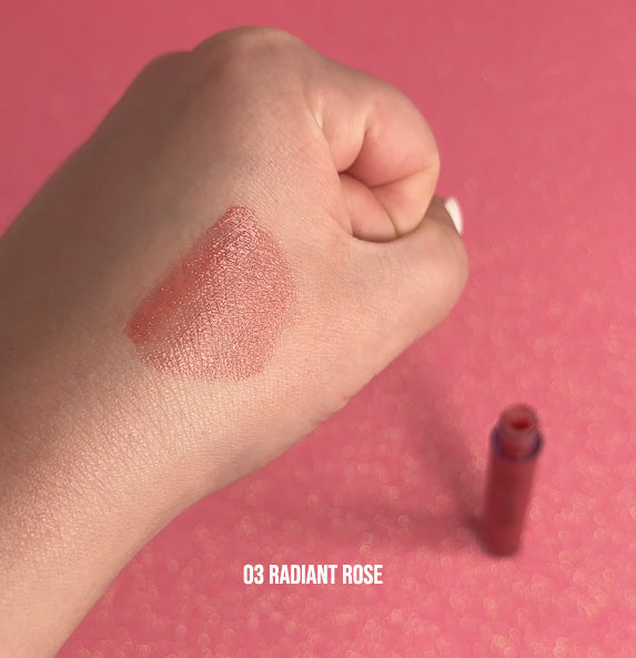 03 Radiant Rose is a glittery rose pink shade.