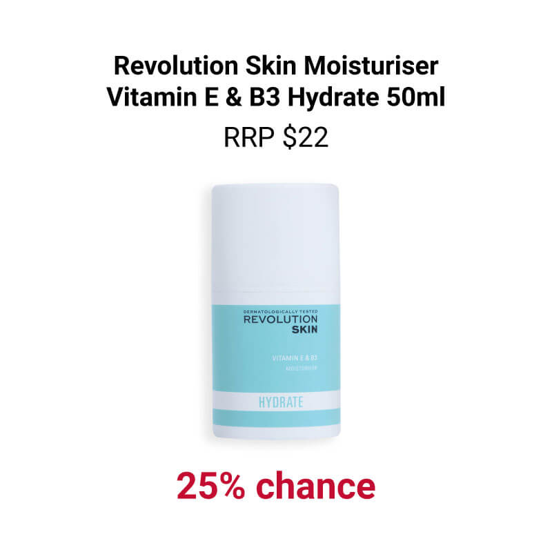 | Revolution Vitamin E & B3 Moisturiser 50ml | $22 | 25% chance âïž |