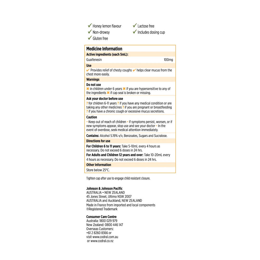 Breathe easier with Codral Mucus Cough Oral Liquid 150 mL, a non-drowsy formula designed to loosen stubborn chest mucus and relieve heavy coughs. Containing the proven expectorant Guaifenesin, this trusted Codral formula helps break down and expel mucus, clearing the airways for easier breathing and lasting relief.