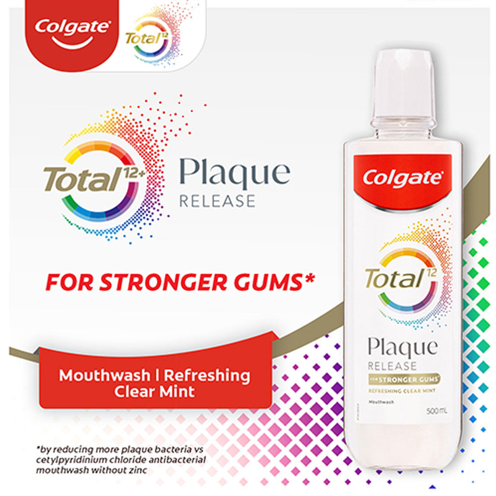 Keep your mouth feeling cleaner and fresher for longer with Colgate Total 12 Plaque Release Mouthwash. Formulated to target plaque build-up even in hard-to-reach areas, this refreshing clear mint mouthwash delivers 12-hour protection for a healthy, confident smile.