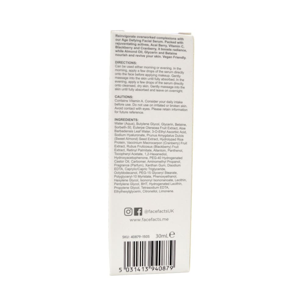 Reveal smoother, younger-looking skin with the Face Facts Age Defying Facial Serum – your everyday defence against visible signs of ageing.