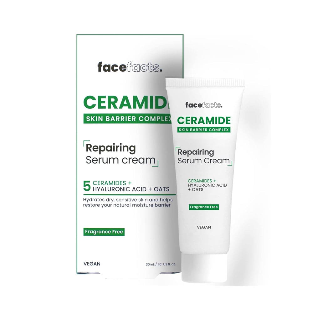 Give your skin the support it deserves with Face Facts Ceramide Repairing Serum Cream – your daily defence against dryness, sensitivity, and dullness.