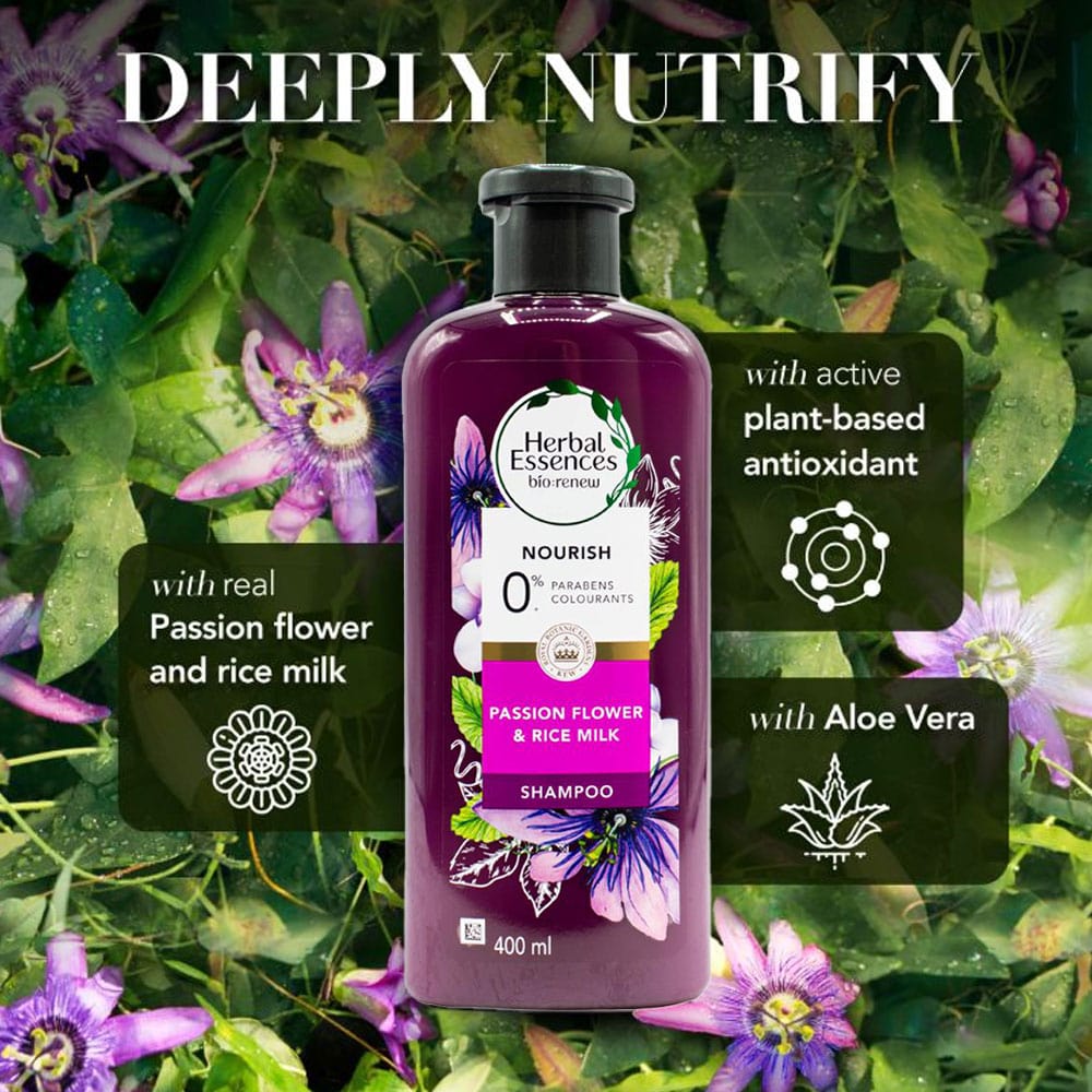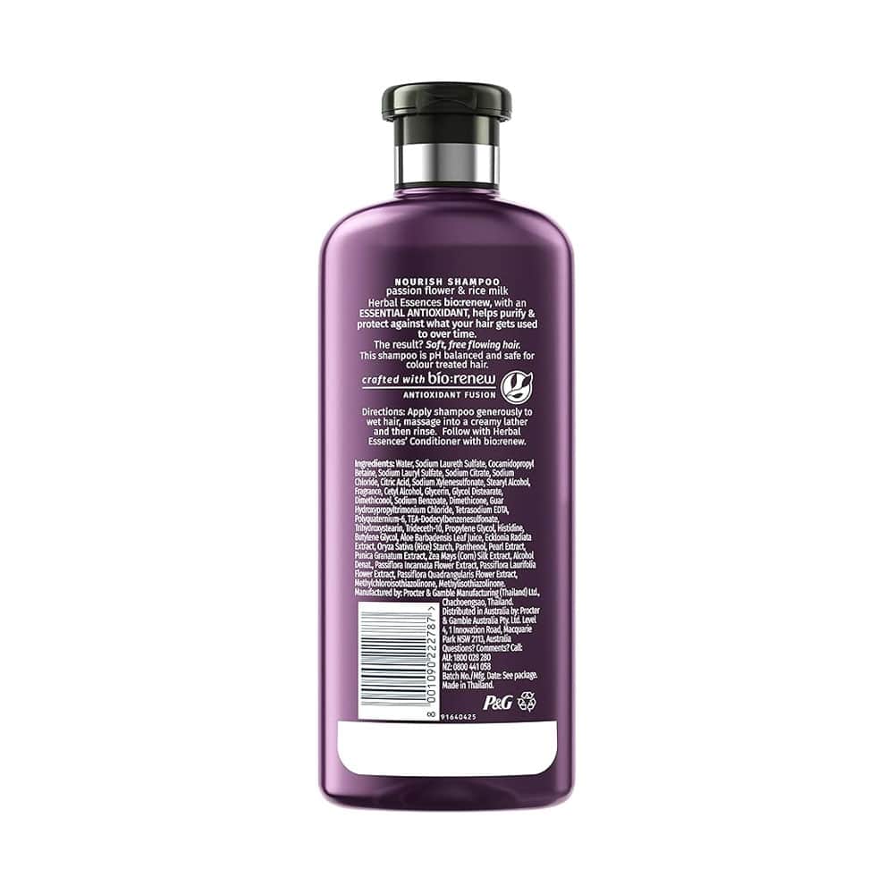 If your hair feels dry, dull, or lifeless, Herbal Essences Nourish Passion Flower & Rice Milk Shampoo is your perfect match. Its creamy, hydrating lather and floral scent make every wash a pampering experience, while its nutrient-rich ingredients work to restore softness and natural beauty.