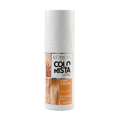 Express yourself with L'Oréal Paris Colorista 1-Day Spray in Rose Gold, the perfect way to add vibrant, temporary colour without the commitment! This ultra-light, quick-drying formula delivers bold, shimmering rose gold tones that wash out in just one shampoo.