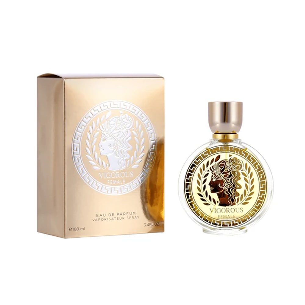 Step into your power with Lovali Vigorous Female Eau De Parfum, a bold and sophisticated fragrance designed for the modern woman. This scent commands attention with its rich floral and warm oriental notes, embodying both strength and femininity. A burst of citrus and spice opens the fragrance, leading into a heart of velvety florals, while a base of amber and creamy vanilla adds an irresistible touch of warmth. The luxurious gold packaging, featuring a Greco-Roman inspired design, exudes confidence, making it the perfect fragrance for those who embrace their inner goddess.