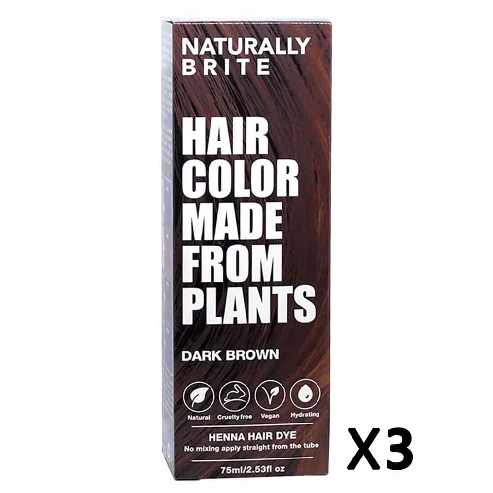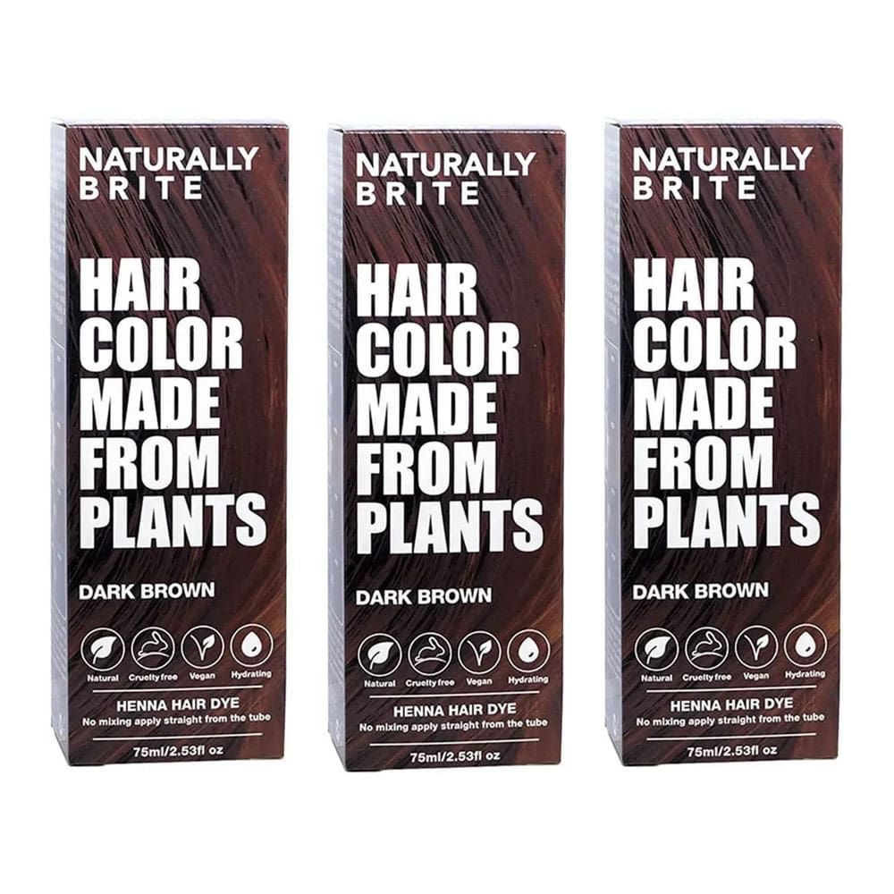 3x Naturally Henna Hair Dye Dark Brown 75ml