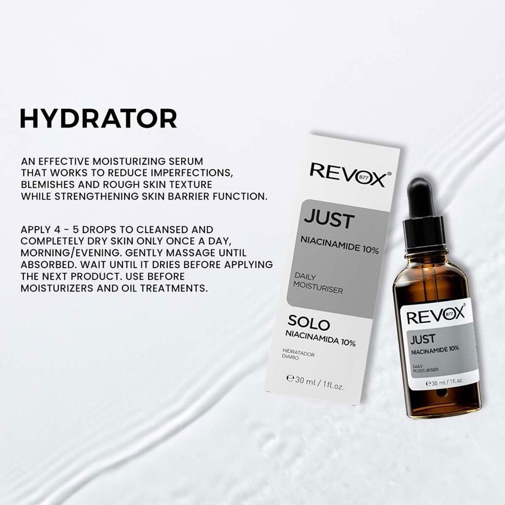 Revox Just Niacinamide 10% Daily Moisturiser targets rough skin texture, dry skin and blemishes. Suitable for all skin types.