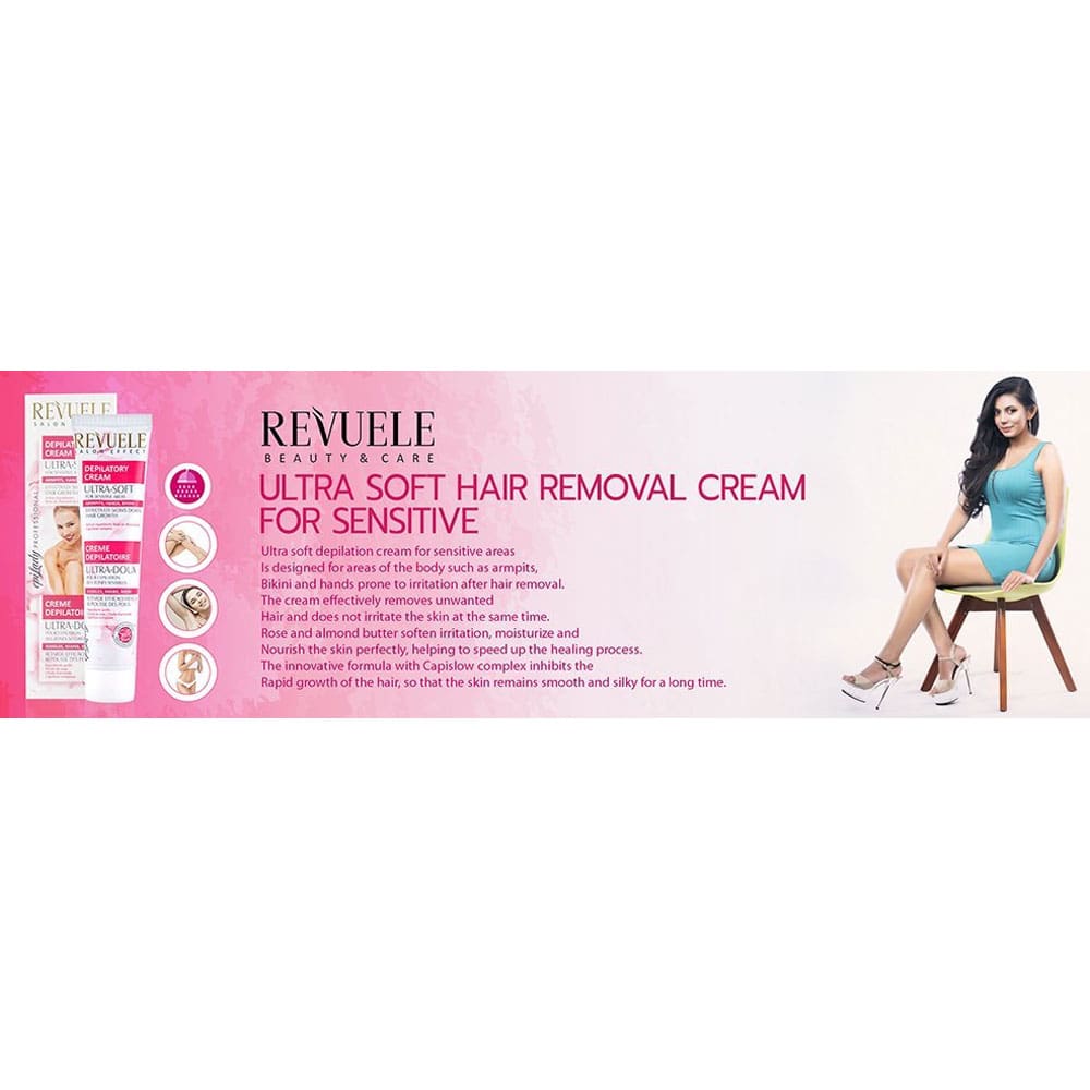 Achieve smooth, hair-free skin without irritation using Revuele Depilatory Cream Ultra-Soft for Sensitive Areas – a delicate formula specially designed for the most sensitive parts of the body.