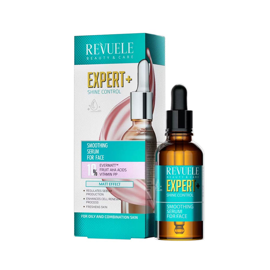 Achieve a smoother, shine-free finish with Revuele Expert+ Shine Control Smoothing Serum – your daily defence against oil and uneven skin texture.