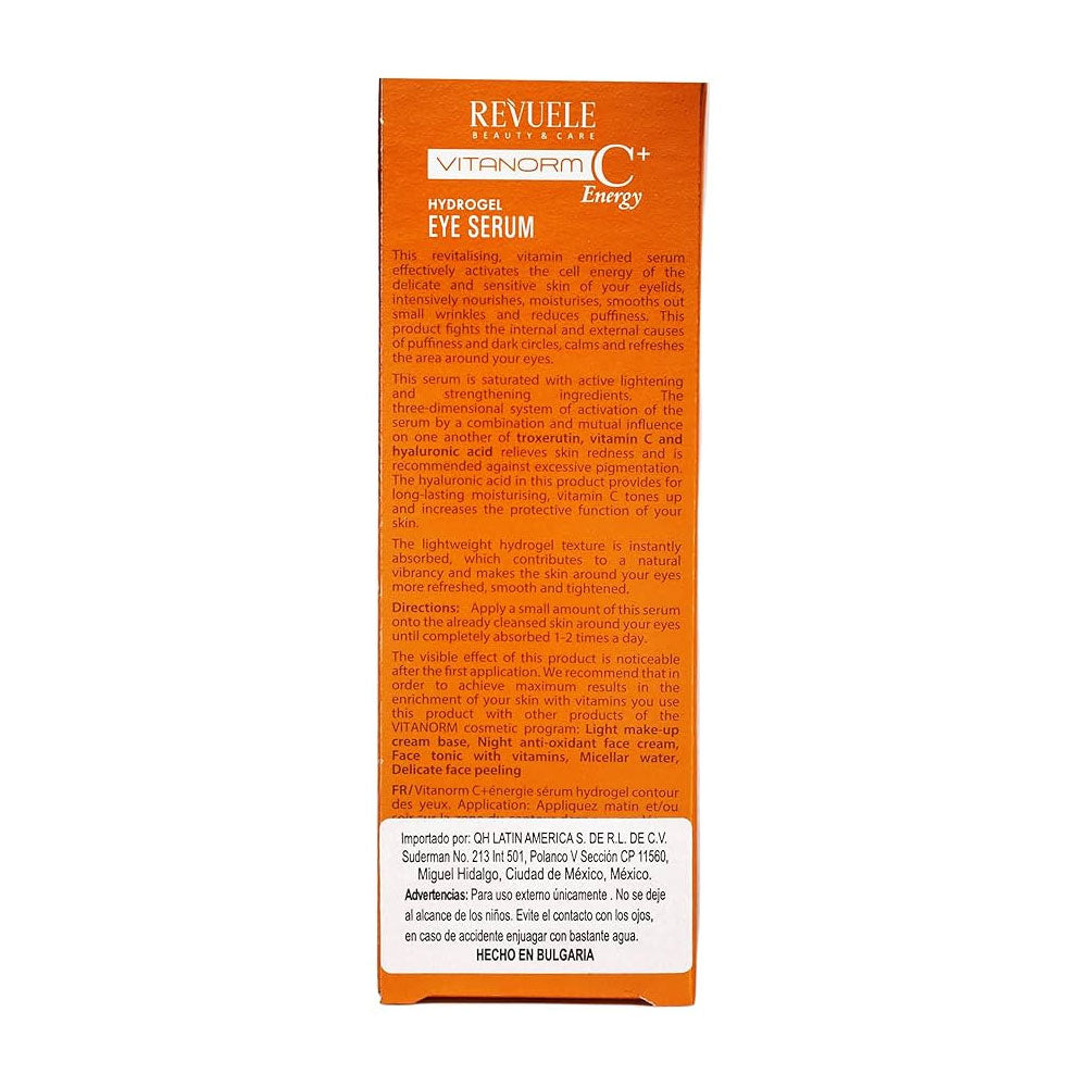 Revuele Vitanorm C+ Energy Hydrogel Eye Serum is a refreshing, fast-absorbing formula designed to reduce the appearance of dark circles, puffiness and fatigue around the eyes. Enriched with Vitamin C, antioxidants, and moisturising actives, it helps awaken the delicate under-eye area for a smoother, brighter and more youthful look.