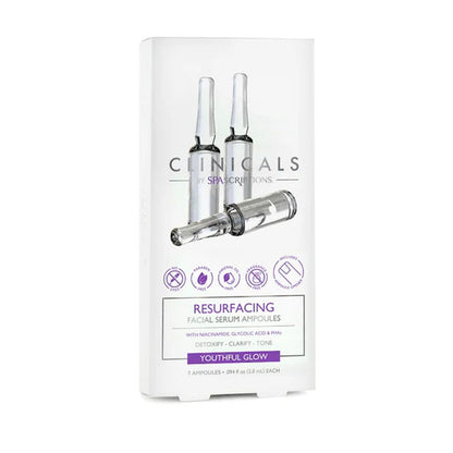 Clinicals Resurfacing Serum Ampoules contain luxurious ingredients to detoxify, clarify, and tone skin! Use daily, morning or night for a smooth and youthful looking skin.
