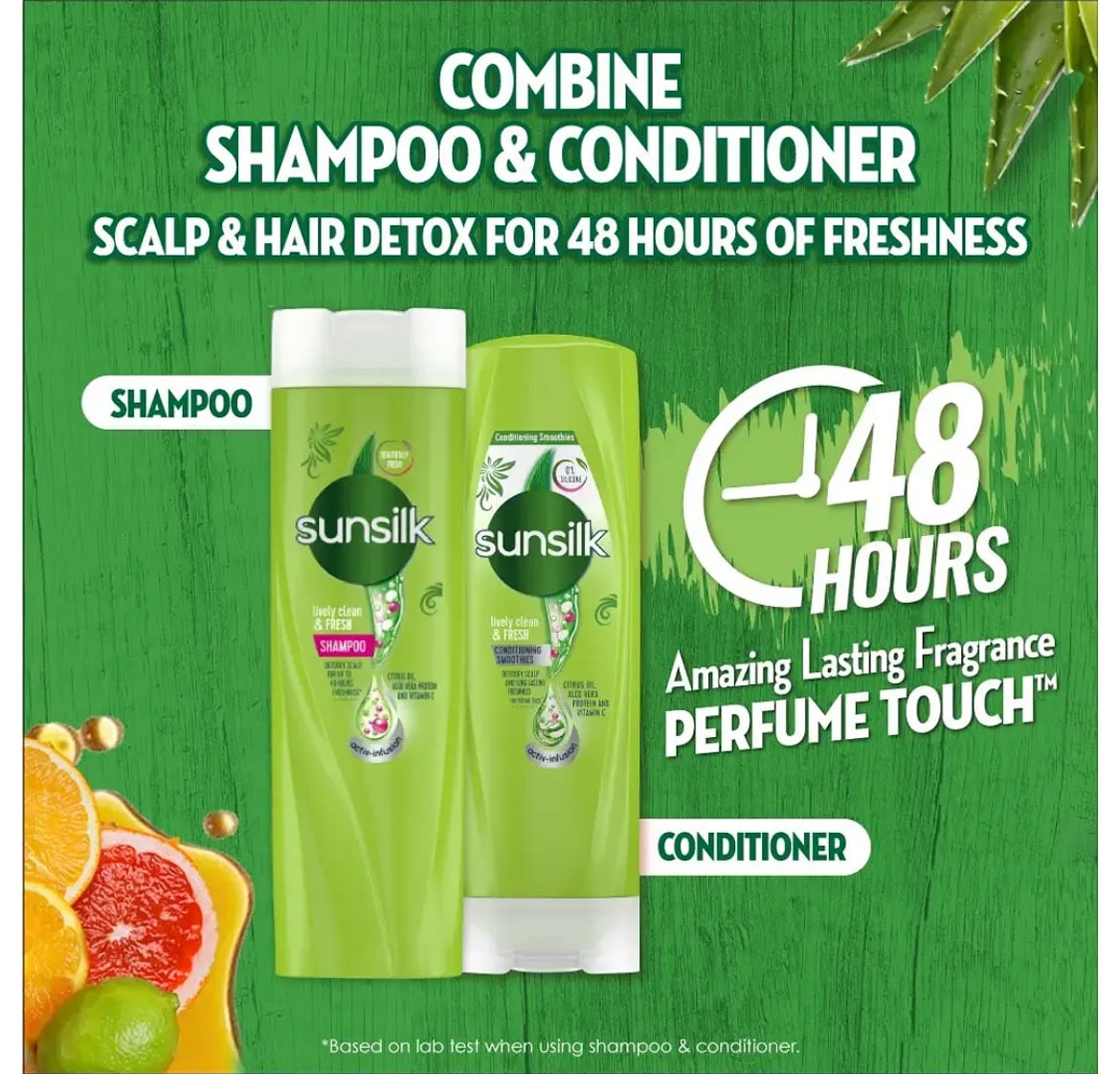 Refresh your hair with every wash using Sunsilk Lively Clean & Fresh Shampoo. Specially designed for oily or frequently washed hair, this revitalising shampoo gently cleanses away dirt, oil and build-up while maintaining your hair’s natural bounce and lightness. The result? Hair that feels clean, energised, and beautifully fresh—all day long.