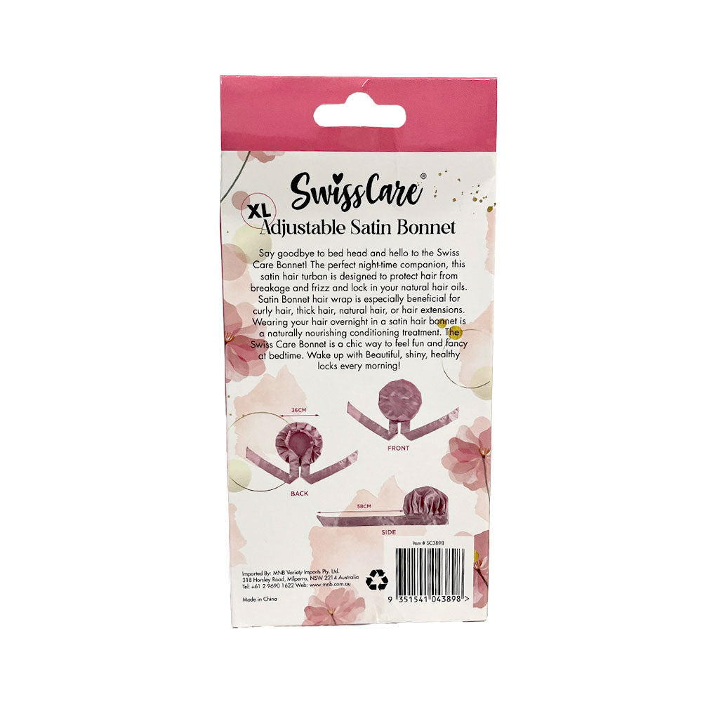 Protect your hair overnight with the SwissCare Adjustable Satin Bonnet — the silky solution to frizz, breakage and flattened styles.
