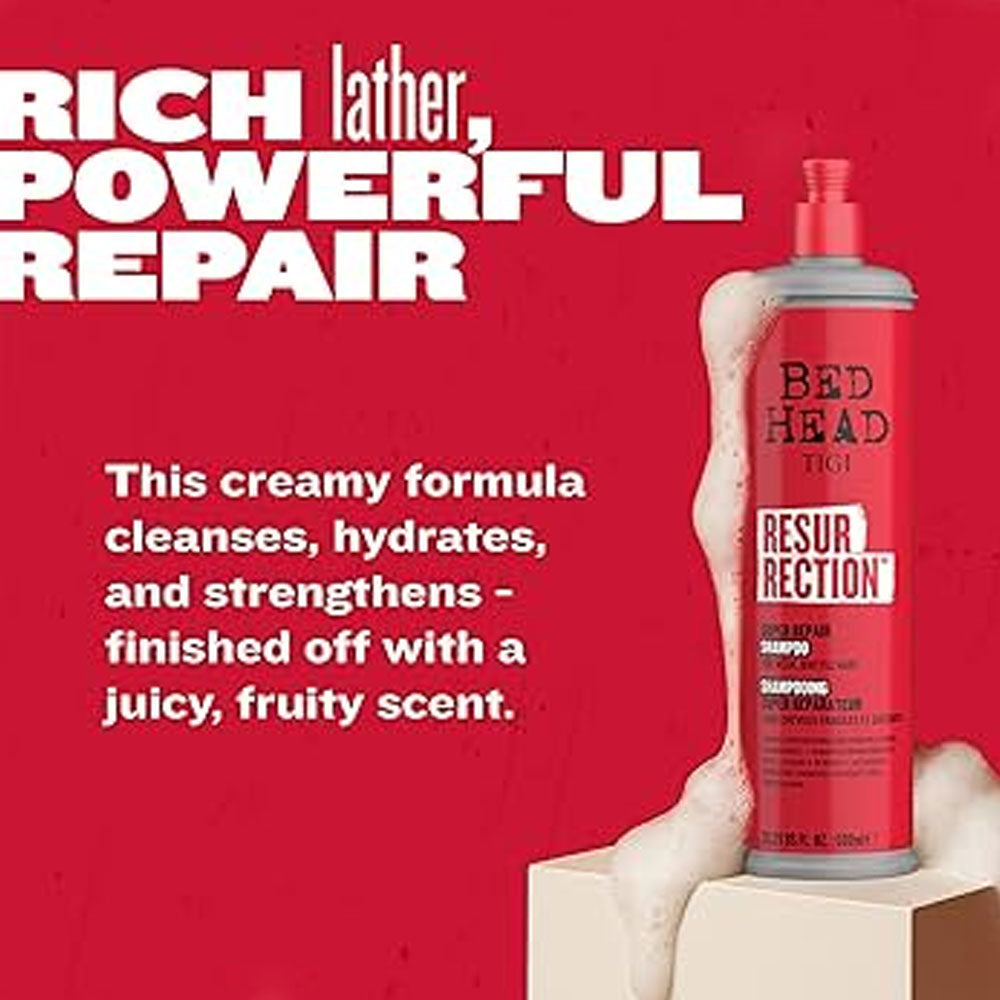 Confession is the first step. Hair needs all the help it can get, so start the resurrection with TIGI Bed Head Resurrection Repair Shampoo. Visibly weak and brittle hair gets the kiss of life using this super repairing shampoo. Hair is renewed with patented technology, left smooth, nourished and repaired. Enriched with lepidophylla extract, known as the resurrection plant for its moisture retention properties.